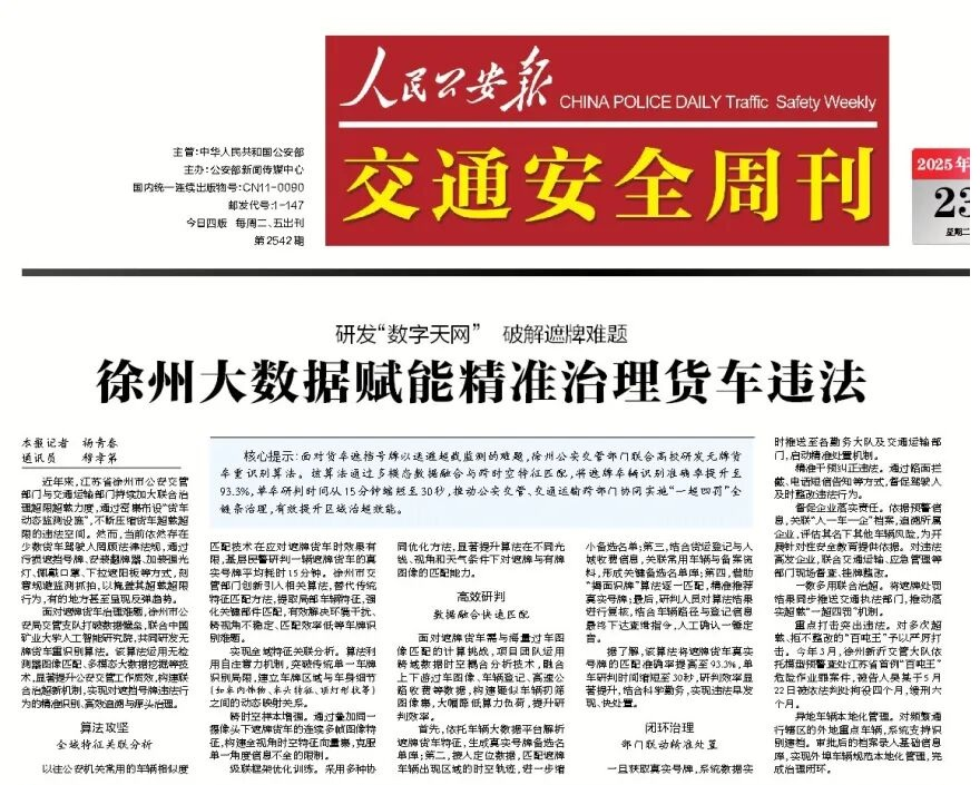 我院姚睿教授团队助力徐州公安 攻克“无牌货车”识别难题
