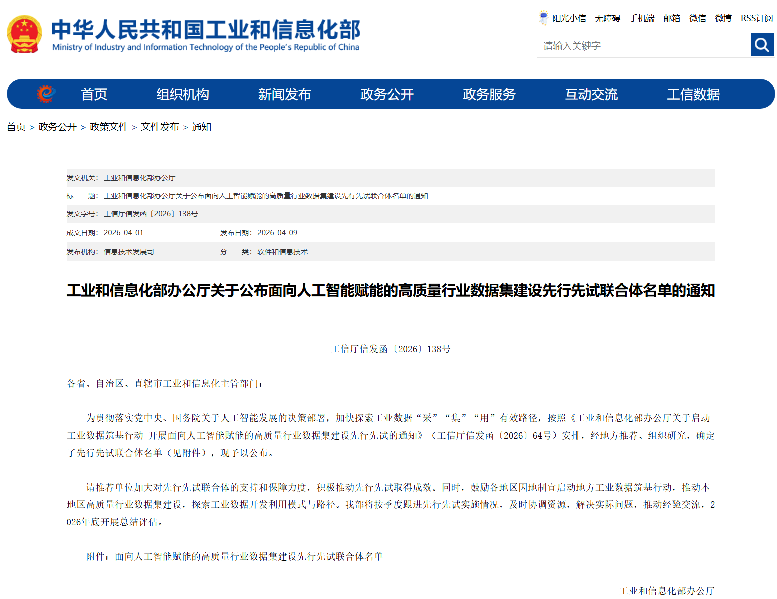 我院参与的工信部《面向人工智能赋能高质量行业数据集建设先行先试联合体》成功入选