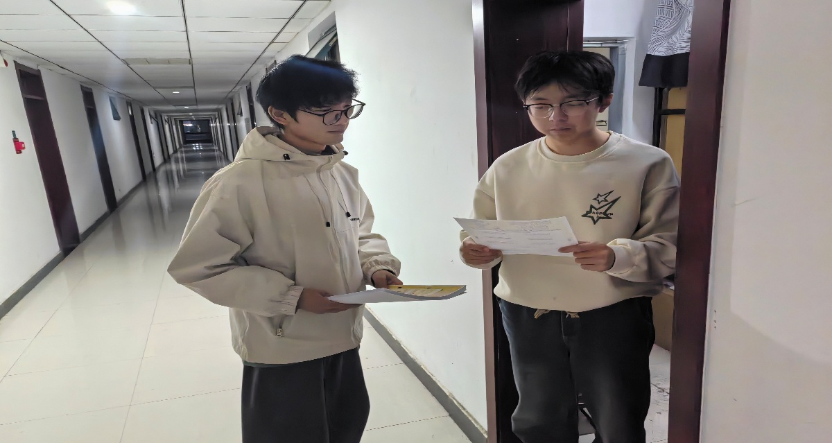 活动筹备阶段,工作组精心设计制作了系列宣传资料。其中,《消防安全倡议书》围绕“宿舍隐患大排查”“火灾预防小贴士”等板块,以图文结合的形式,详细阐述了违规电器使用、灭火器操作等6类禁止行为与2项应急技能。活动正式开始后,志愿者手持倡议书逐一走访宿舍,向同学们耐心讲解海报内容。同学们认真阅读材料、积极提问,现场互动氛围热烈。在近一小时的活动中,一份份承载着安全嘱托的倡议书,随着志愿者轻轻的敲门声,被送至每间宿舍的书桌前。志愿者离去时,不少宿舍内传来整理插排、挪移纸箱的窸窣声——这一次“敲门”,不仅传递了一份倡议,更悄然唤醒了大家的安全意识。