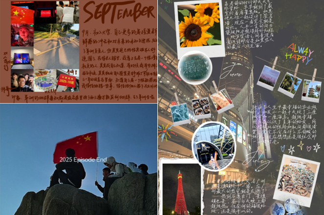 活动启动后,受到全院同学的广泛关注与踊跃参与。大家怀着对过往的珍视,纷纷分享自己成长路上的珍贵印记,让这个冬天的回望充满青春的张力。从学业攻坚后的豁然开朗,到挚友相伴的温暖时刻,再到社团实践中的拼搏与喜悦——无数藏着汗水与荣光的片段,交织成此次分享的主旋律。同学们借助照片、手账、短视频等形式,匠心打造出一场独特的“年度时光展”:团建时的欢笑瞬间被精心拼成九宫格,每一帧都定格着同窗情谊;课堂上的专注、赛场上的拼搏、校园中的漫步,经由短视频的串联,让一整年的记忆生动浮现;按月精选的照片旁,辅以真挚的文字感悟,清晰勾勒出成长的步步足迹。每份作品都承载着对过去的眷恋与对未来的憧憬,这些真挚的情感也为新一年的奋斗之路注入了温暖而坚实的力量。