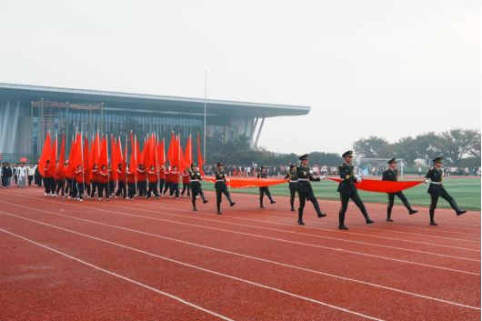 入场式上,伴随着《运动员进行曲》的旋律,国旗方阵、彩旗方阵、各年级学生代表方阵、教师方阵以各具特色的方式依次入场,他们步伐矫健、口号嘹亮、表演精彩,彰显了我院师生自信自强、团结一心、积极向上的精神风貌。