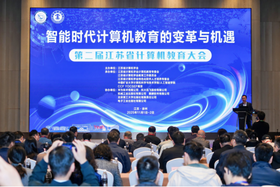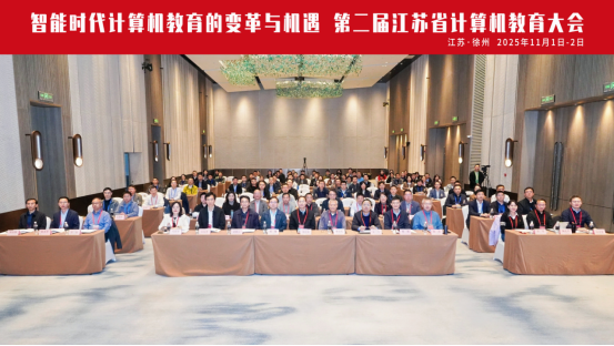 11月2日,第二届江苏省计算机教育大会在徐州举行。本次大会以“智能时代计算机教育的变革与机遇”为主题,聚焦人工智能赋能计算机教育,旨在促进智能技术与教育教学的深度融合。我校党委副书记李江涛,第二届江苏省计算机教育大会主席陈兵教授,江苏省计算机学会秘书长金莹,江苏省计算机学会副理事长武港山教授、周勇教授、毛启容教授,江苏省计算机学会教育工委主任陶先平教授,校教务部部长石礼伟,计算机科学与技术学院/人工智能学院党委书记周治国、院长孙彦景等出席开幕式。江苏省计算机学会计算机教育专委会主任黄圣君主持开幕式。