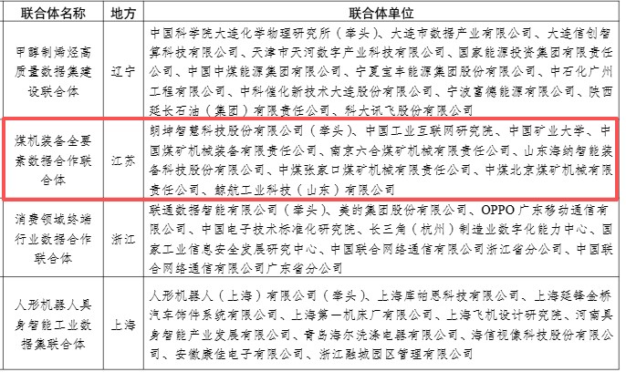 近日,工业和信息化部办公厅公布了《面向人工智能赋能的高质量行业数据集建设先行先试联合体名单》,由朗坤智慧科技股份有限公司牵头,联合中国工业互联网研究院、中国矿业大学、中国煤矿机械装备有限责任公司等单位共同组成的“煤机装备全要素数据合作联合体”成功入选。我院作为参建单位,深度参与联合体建设工作。