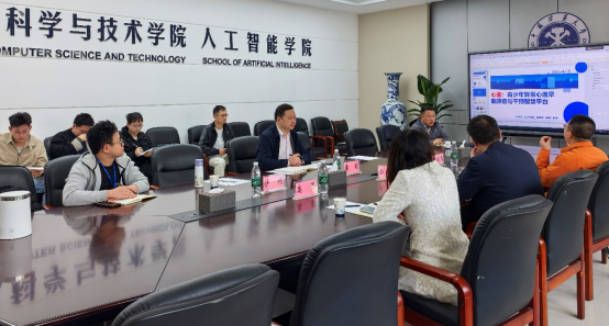 2026年4月15日,教务部副部长杨康、实践教学与双创教育中心科长高蕾、国创赛指导专家曹明浩一行来学院调研指导2026年中国国际大学生创新大赛备赛项目,副院长袁冠、人工智能系主任许新征、教务办公室沙艳老师以及参赛团队核心成员参加了会议。