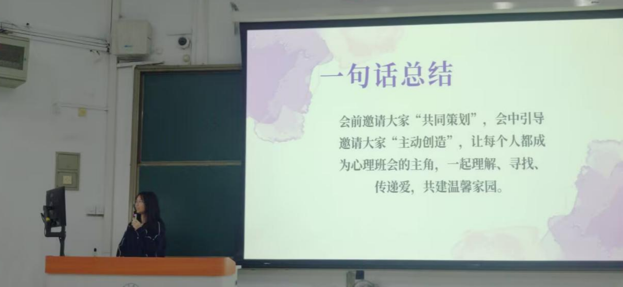 培训尾声,上一学年的优秀心理委员姚家怡受邀分享经验。她从活动策划、流程把控、氛围调动、效果复盘等方面,分享了心理主题班会组织的实操技巧与心得体会,为新任心理委员提供了极具参考价值的工作范本,也激发了大家的工作热情与信心。