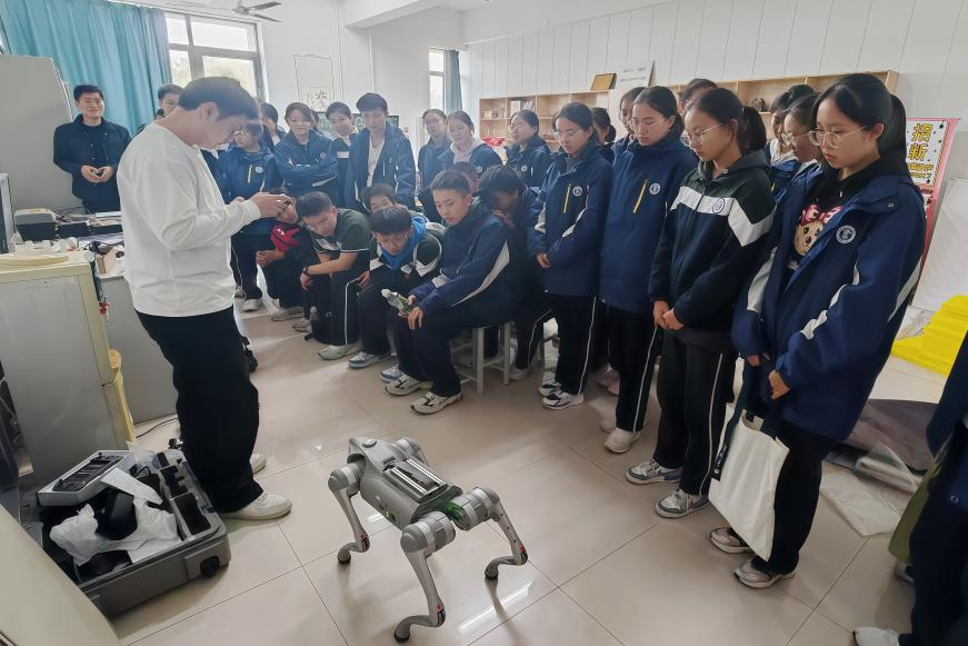 学生科技社团成员现场演示了仿生机器狗、智能车等多款机器人设备,结合自身参赛经历,分享了竞赛对综合能力培养的重要性,鼓励同学们在实践中锻炼创新思维与动手能力,为未来的学习和工作打下坚实基础。