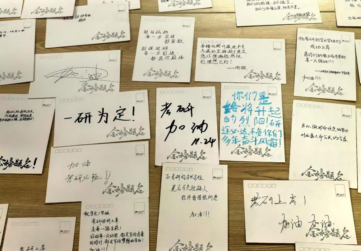 活动启动后,同学们积极响应,纷纷参与到明信片书写中。围绕“考研上岸”“逐梦前行”等暖心主题,同学们在精致的明信片上挥笔写下真挚的祝福与鼓励,每一笔字迹都饱含着对考研学子的理解与支持。一张张明信片,不仅是简单的文字载体,更成为校园里传递温情的纽带。活动后期,志愿者们将收集到的数十张明信片进行细致整理分类。并在11月30日下午将满载心意的明信片逐一送到考研学子手中。这份突如其来的惊喜,让备考中的学子们倍感温暖。