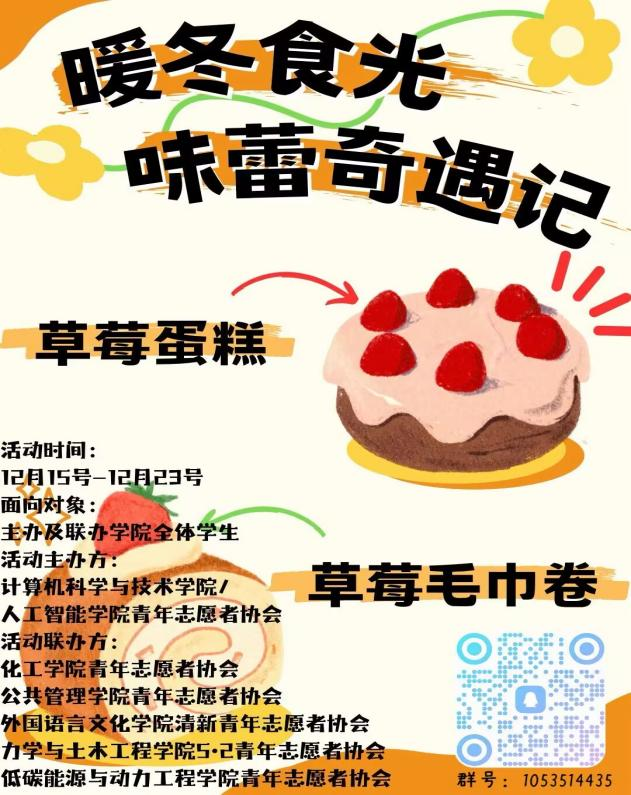 为给校园增添蓬勃朝气与融融暖意,在忙碌的学习之余为同学们送上一份治愈惊喜,我院于12月15日至12月23日举办“暖冬时光·味蕾奇遇记”主题活动。