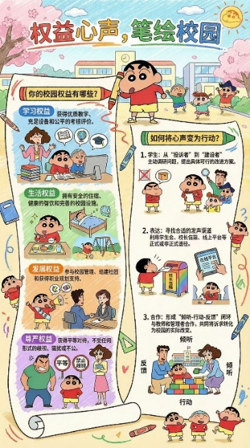 为提升同学们的权益保护意识,增进对校园权益相关知识的了解,我院学生会于2025年12月18日至28日组织开展了“权益心声,笔绘校园”主题创作活动。