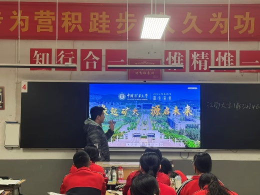 为增进同学们对中国矿业大学的了解,团队成员还通过PPT展示和发放宣传资料,系统介绍了学校的办学历史、学科优势、人才培养模式、科研平台及招生政策等内容,帮助同学们更直观、全面地认识学校的综合实力与办学特色。活动累计发放宣传资料100余份,反响良好,宣讲效果显著。