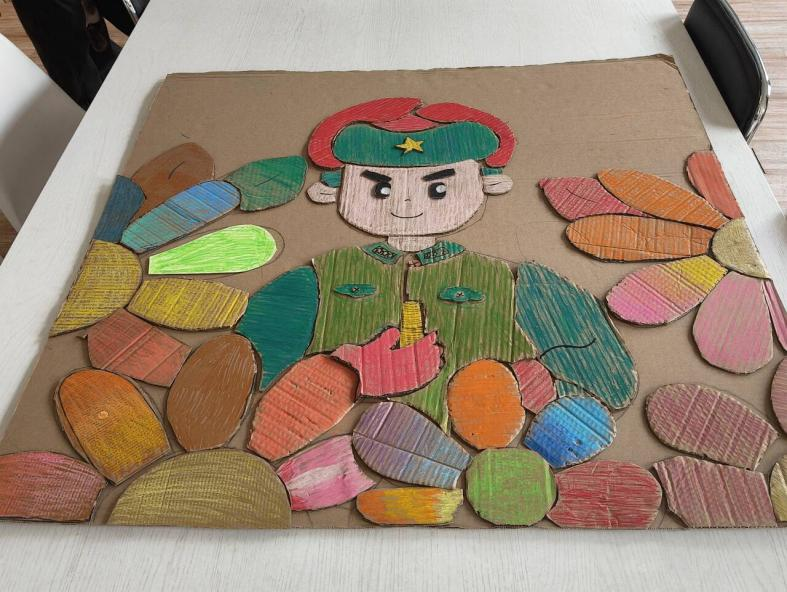 本次活动以闲置旧物为创作载体,同学们提前准备好旧布料、旧纸板等物品,发挥奇思妙想,围绕雷锋精神展开创意制作,通过剪裁、拼贴、粘合等方式,将零散旧物转化为一幅幅饱含深意、体现互助友爱的拼贴作品。创作过程中,大家相互交流思路、彼此协助,现场氛围温馨热烈;工作人员全程提供支持,做好签到记录、秩序维护等工作,保障活动有序开展。活动结束后,参与同学与自己亲手完成的作品合影留念,定格下雷锋月的独特记忆。